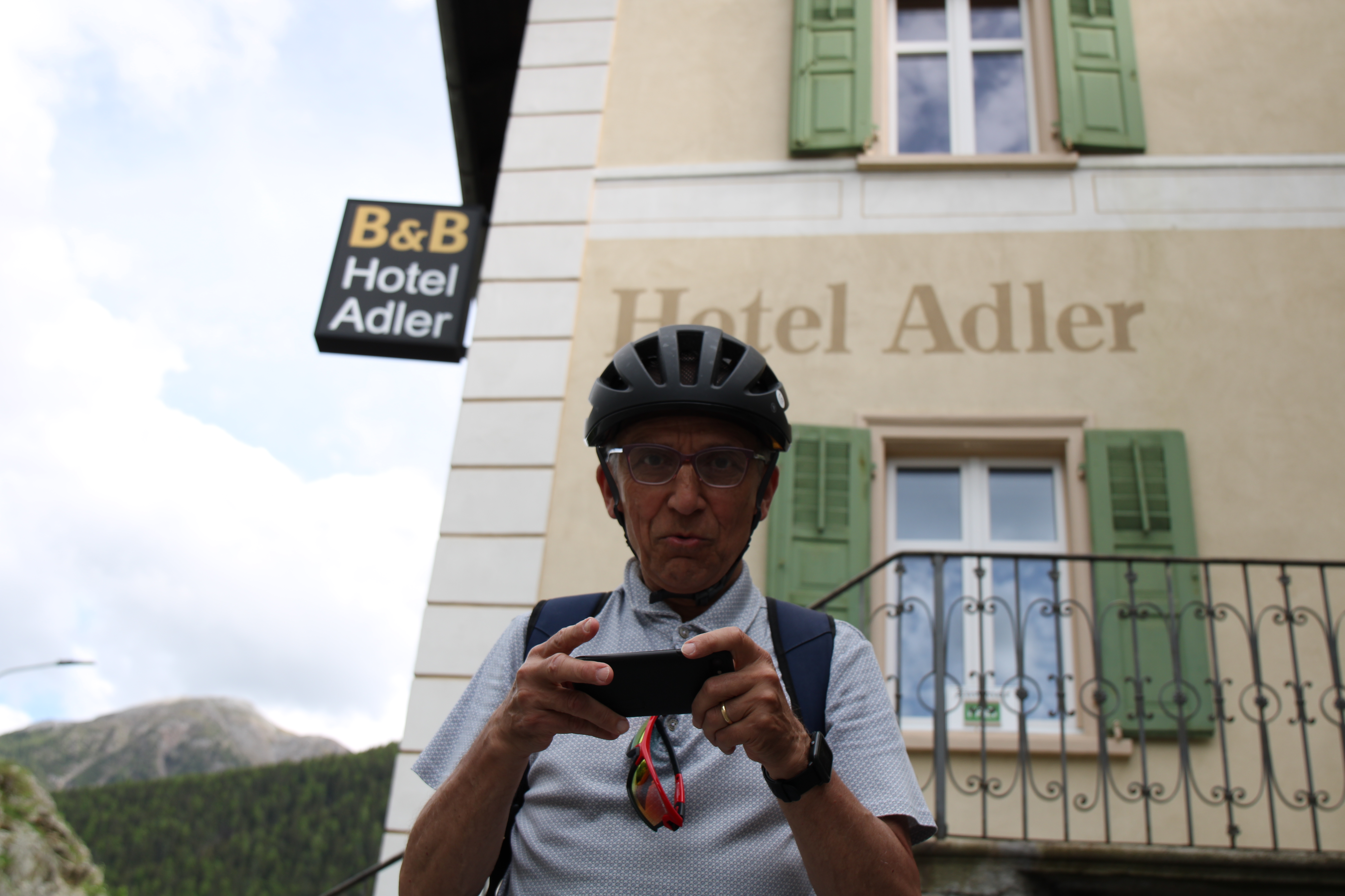 We go back to Reichenau-Tamins, and seeing how steep the bike was to our accomodation, we're thankful that our bags were already up there, waiting for us