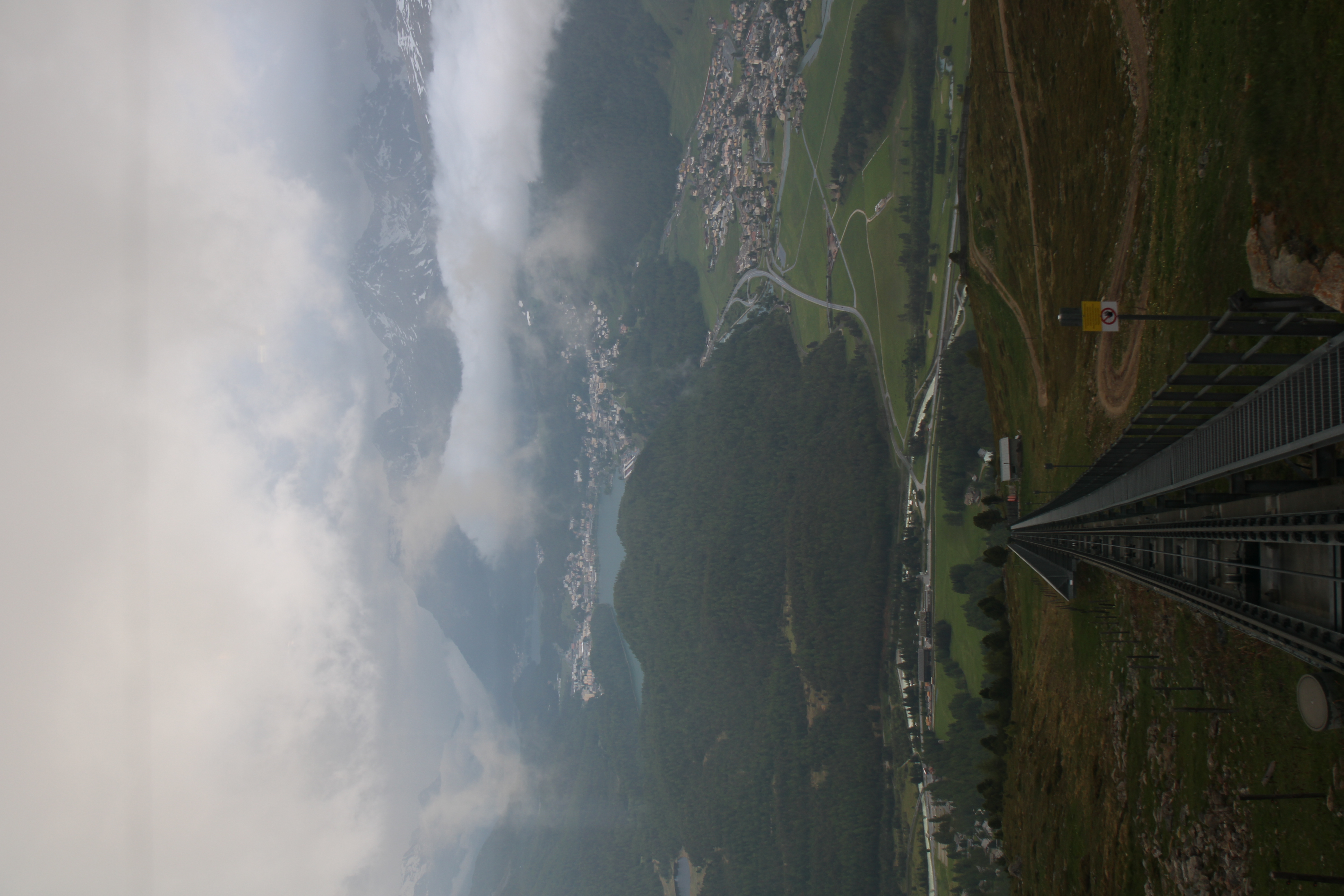 We end up finding the entrance, and we see there were some Red Bull athletes practicing for a 400m race that goes up this ski jump slope. The ticket lady eventually came, and we bought some tickets to visit.
